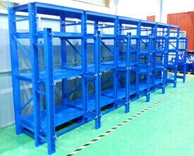抽屉式货架又称模具货架,主要用于存放各种模具物品。顶部可配置移动葫芦车(手拉或电动),抽屉底部设有滚轮轨道,承载后依然能用很小的力自如地拉动,附加定位保险装置,安全可靠;根据承载能力可分为轻量型、重量型两种。操作轻便:采用轴承组合,滑动平移并附有独立吊模装置,无需大型行车及叉车。根据层载能力要求分为轻型模具货架和重型模具货架。货架顶部可配置移动葫芦车,以方便模具的起吊。